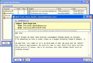 PEN is an Email Notifier for Windows 98/Me/2000/NT/XP written by me, Cliff Pennock. Hence the name. :) If you are using Mozilla/Firefox©, Netscape™©, or -heaven forbid- Outlook™®©, then you are probably aware that you'll have to have these programs running to get notified of new incoming email. PEN sits in your systray and periodically checks for new email. You can enter as many email accounts as you want. If PEN finds new mail in your mailbox, it will display a small non-intrusive pop-up window and play the sound of your choice (every account can have its own unique sound). ![]() Besides ordinary POP3 email (and POP3 over SSL), PEN also supports IMAP, Hotmail, MSN, Excite, GMail, Netscape.net, AOL, Yahoo, Lycos and Mail.com web-based email! When new mail arrives, you can preview the mail's subject lines, and even peek inside the message. If it turns out to be something you don't want (like spam) you can immediately remove it from your mail box. ![]() Adding more email accounts is easy. You can either start the "Add New Account Wizard", or add an account using the Account Window. In the Account Window you can specify how often mail should be checked and which sound should be played when new email arrives. I've even added a few sounds for you to choose from! ![]() You can download a 30-day trial version by clicking on the "Download" button on the left. If you decide to keep it after 30 days, you can purchase an activation key for only US$5 (yes, five dollars)!!! Download it now, see if you like it!